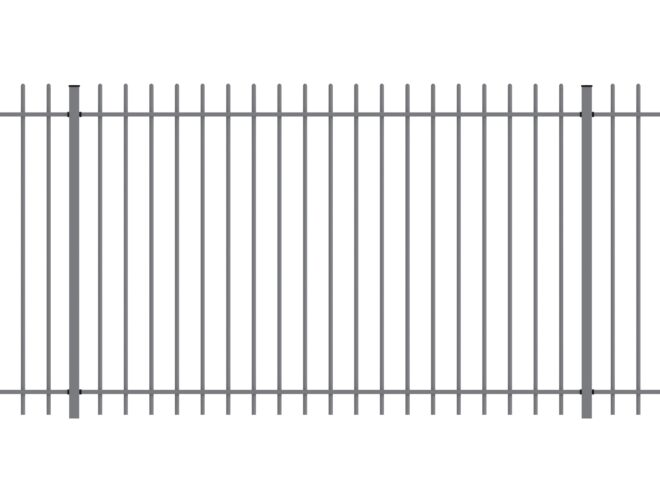 The bar fencing is constructed from bar panels that are blind-mounted to the posts, ensuring a seamless and secure connection.